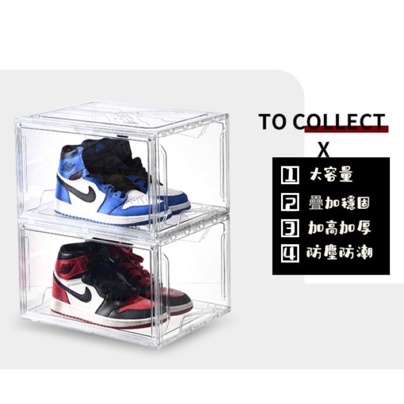 台灣現貨 ?? 免運 附發票 透明鞋盒 磁吸 側開 加厚款 硬盒 球鞋收納 穩固疊加 鞋盒