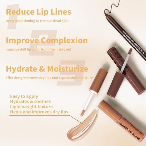 Glossy Lip Combo: This lip oil combo creates plump and moisturized lips. Pair the brown lip liner with a different color lip gloss for a different lip look. The lip liner is used to create a stunning lip line while the lip gloss gives a gorgeous color to the lips.
