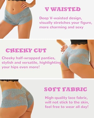 ALL OF ME Women Underwear Sexy Lace Boy Shorts V-Waist Lightweight Seamless Soft Cheeky Panties 5 Pack