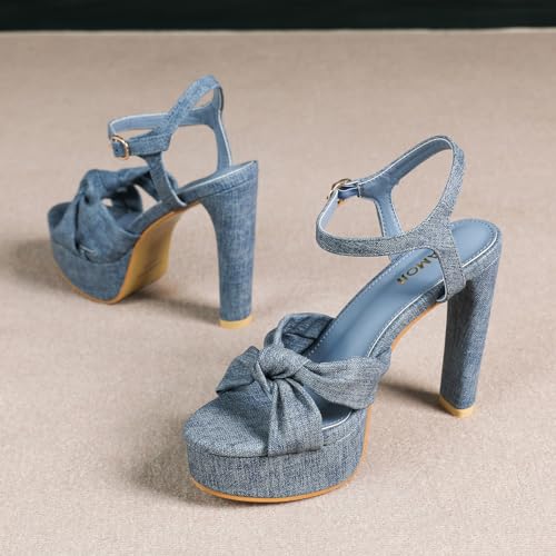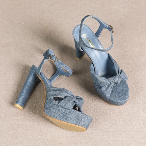Amoji Women 4 Inch Block Platform Heels Braid Knot Lady Heeled Sandals FZ322