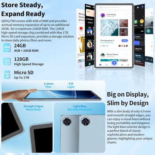 ??Android 15 Tablet, 128GB ROM??New large-capacity Android 15 tablet 24GB RAM (4GB RAM + 20GB extend), 128GB ROM allows you to store more photos and documents. A micro SD card slot expands storage up to 1TB (FAT32 format, sold separately) so you can store all your favorite media files together, including ebooks, videos, photos. Android 15 and GMS certified, allowing you to download popular apps from the Google Play Store ??11" IPS Display + Widevine L1??Tablet with a 11 inch 2K display, providing a realistic visual experience with clear details. Using IPS Incell fully laminated display technology, the screen is clearer, richer in color, and also provides a wider viewing angle. Effectively filters harmful blue light, reduces eye fatigue and irritation, and protects your vision health. Additionally, Tablet supports Widevine L1. This allows you to smoothly watch copyrighted content such as high-quality HD content and streaming services on Prime video, DISNEP, Hulu, etc. It also supports wireless projection and can easily connect to a large TV ??8-core Tablet + 8000mAh??It has faster reading and writing capabilities than MT8175, Maintains excellent performance while suppressing heat generation. Android 15 tablet can provide the ultimate mobile gaming experience. Its octa-core GPU making mobile games more visually stunning. The 8000mAh large-capacity battery allows you to enjoy movies, TV series, music, etc. for a long time with confidence. Battery life has never been better! ??5G WIFI + GMS Certified??supports high-speed AC 2.4G/5G Wi-Fi and BT5.0 more stably and faster. The front 5MP camera and rear 8MP camera can capture stunning photos and enjoy clear video chats. High-quality dual-speaker design provides you with immersive and high-quality audio. With the pre-installed Google kids space, parents can control the tablet's usage rights, time limit and so on via google family link. It is perfect gift for lover, kids, seniors,friends, etc. ??2 in 1 Tablet??The QDDQ tablet comes with a Bluetooth keyboard, wireless mouse, and foldable protective case, allowing you to flexibly transform the tablets into laptop mode or computer mode. The package includes: 1 x 11 inch tablet, 1 x keyboard, 1 x mouse, 1 x stylus pen, 1 x foldable protective case, 1 x screen protector, 1 x charging head, 1 x USB-C charger cable, 1 x user manual