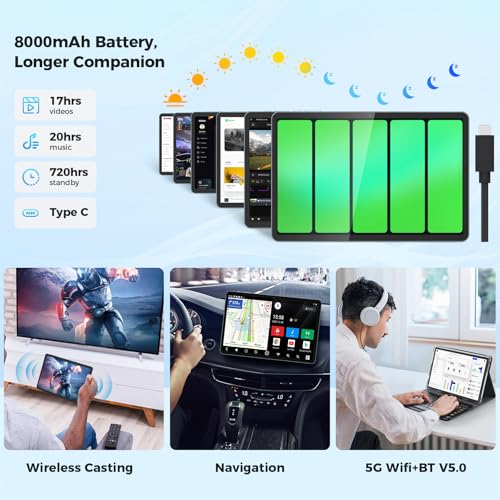??Android 15 OS?? The Android 15 tablet introduces enhanced privacy settings and security features, as well as improved multitasking capabilities and split-screen mode to help users stay organised and productive on Android tablets while ensuring a safer digital environment ??Octa-Core T606?? The octa-core chipset can handle more demanding applications and tasks such as streaming video, browsing the web and running apps simultaneously without lag or slowdown, resulting in smoother performance and faster load times ??Ample storage space??The 10 inch Android tablet with 24(4+20)GB of RAM can run multiple apps at the same time without lag. Users can switch between apps quickly and smoothly. The 128GB internal storage provides plenty of space to store apps, games, photos, videos, music and other files without worrying about running out of space ??5G WiFi & Bluetooth5.0??5G WiFi delivers faster Internet speeds, enabling faster downloads, smoother streaming and faster web browsing. Bluetooth5.0 allows the Android tablet to connect wirelessly to a variety of devices such as headphones, speakers, keyboards and mice ??Long Battery Life??The tablet with keyboard is equipped with an upgraded 8000mAh battery for longer battery life. Whether you are on a long trip or on your daily commute, the 10 inch tablet lets you juggle entertainment and work wherever you are. The long battery life means you never have to worry about running out of power ??Package contents??1 x 10-inch tablet, 1 x keyboard, 1 x mouse, 1 x stylus, 1 x protective case, 1 x user manual, 1 x USB charger, 1 x Type-C cable, 1 x OTG cable. As well as using the Android tablets yourself, you can also give them as gifts to friends and family