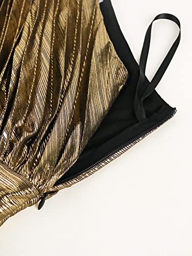 AOMEI Women's Luxury Metallic One Shoulder Sleeveless Elegant Pleated Long Dress