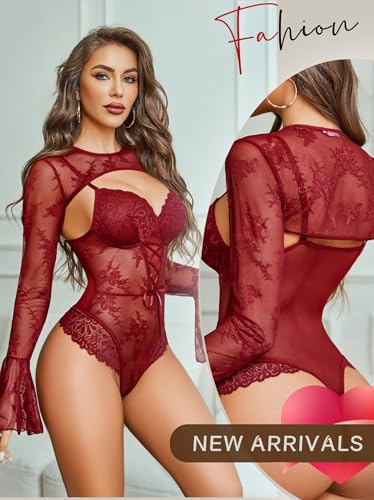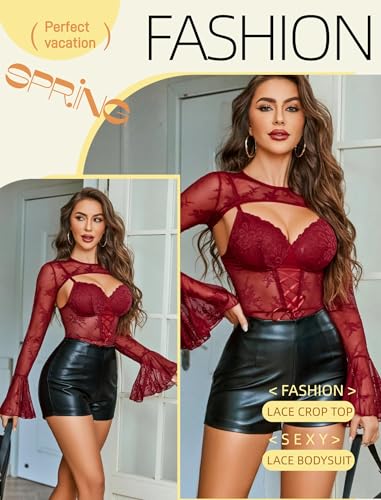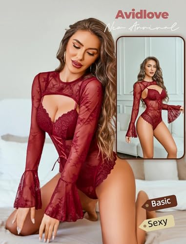 Avidlove Women Lace Bodysuit with Crop Top Sexy Going Out Bodysuit Floral Lace Lingerie Set Sexy Rave Outfits