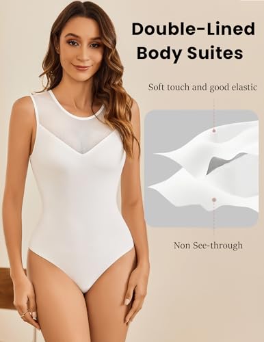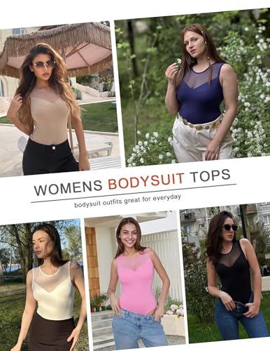 Avidlove Bodysuits for Women Summer Tops Mesh Crew Neck Leotards Shirts Sleeveless Going Out Bodysuit Tops