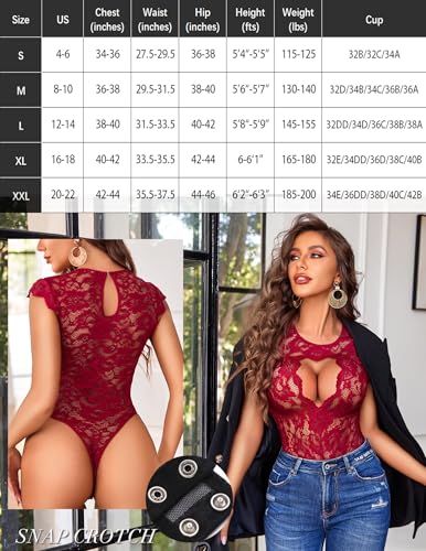 Avidlove Lace Bodysuits for Women Lingerie Bodysuit Tops One Piece Teddy Short Sleeve S-XXL