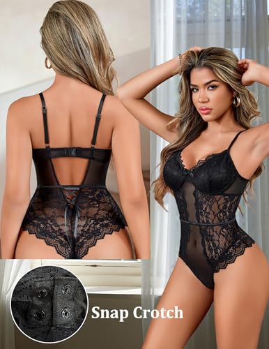 Avidlove Lingerie for Women Lace Bodysuit Sexy Teddy Lingerie Snap Crotch One Piece Mini Babydoll