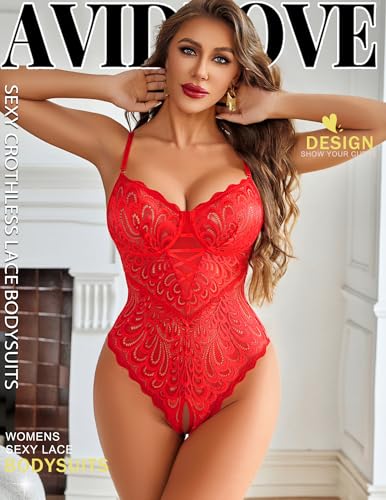 Avidlove Lingerie For Women Lace Bodysuits Deep V Teddy One Piece Mini Babydoll Outfits S-XXL