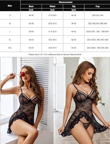 Avidlove Lingerie for Women Sexy Lace Babydoll Mesh Chemise Nightgown Ruffle Hem Sleep Dress
