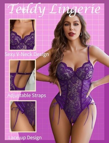 Avidlove Lingerie for Women Sexy Lace Bodysuit Teddy One Piece Lingerie Lace-up Back Cut Out Lingerie