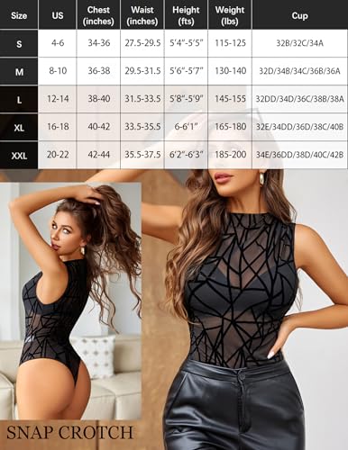 Avidlove Mesh Bodysuits for Women Mock Neck Sheer Sleeveless Shirts Ruched Going Out Tank Bodysuit Tops