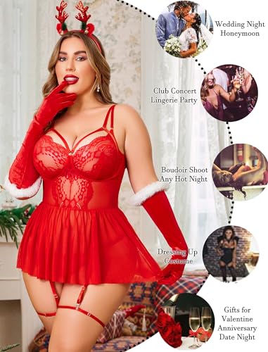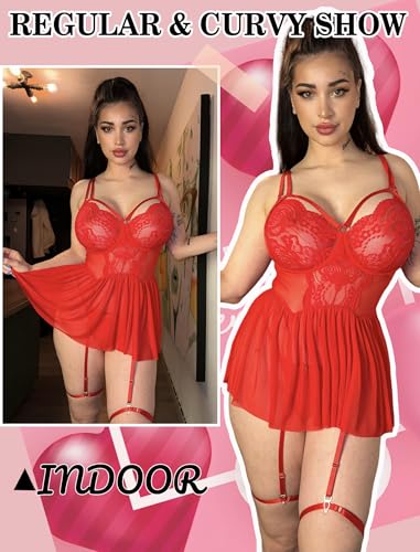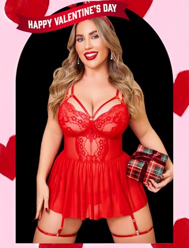 Avidlove Plus Size Lingerie for Women Sexy Lace Babydoll Mesh Chemise Boudoir Nighty with Garter Belt