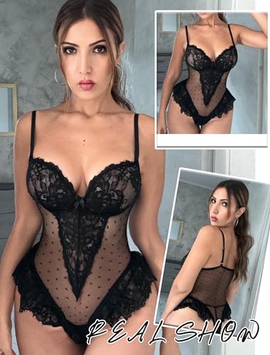 Avidlove Sexy Lingerie for Women Lace Teddy Lingerie One Piece Bodysuit Deep V Babydoll Nightgown