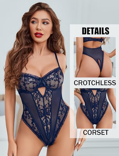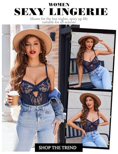Avidlove Sexy Lingerie for Women V Neck Lace Teddy Lingerie Push Up One Piece Lingerie Bodysuit