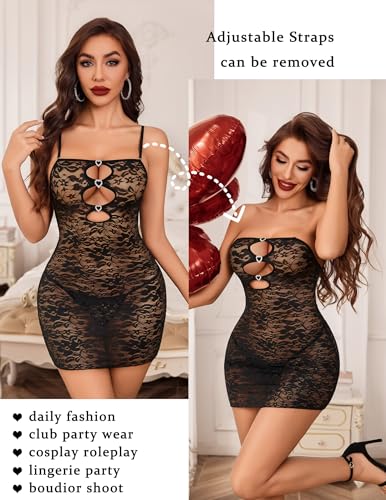 Avidlove Women Lace Lingerie Dress Cutout Bodycon Chemise Removable Adjustable Strap Exotic Boudoir Outfits