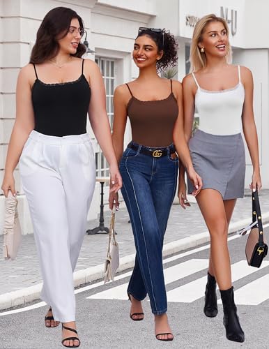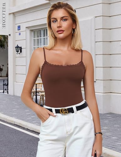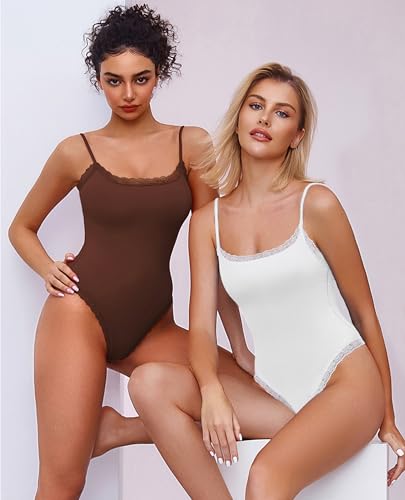 Avidlove Women Square Neck Lace Bodysuit Sleeveless Spaghetti Strap Tank Top Body Suits