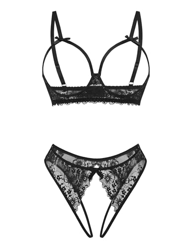 Avidlove Women's Exotic Lingerie Sets Naughty 2 Pieces Bra Panty Set Sexy Cutout Lace Lingerie