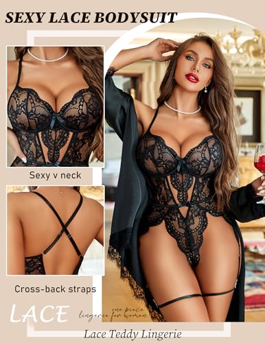 Avidlove Womens Lingerie Floral Lace Bodysuit Cross-Back Straps Teddy One Piece Babydoll S-XXL