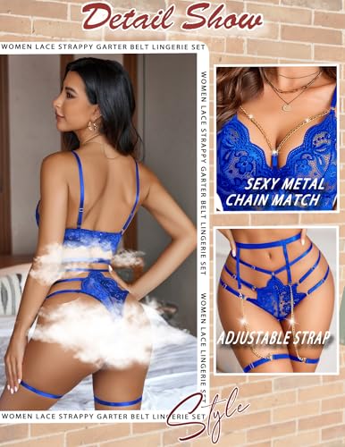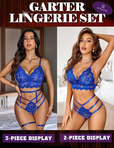 Avidlove Women's Lingerie Set 3 Piece Garter Lingerie Lace Bra and Panty Set S-XXL
