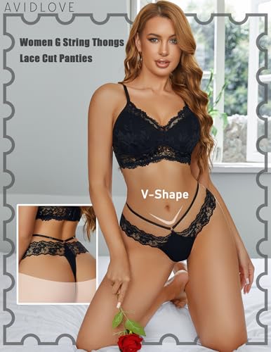 Avidlove Womens Underwear Cotton Thongs Sexy Lace Bikini Panties V Shape Waistband Tangas 1-4 Packs