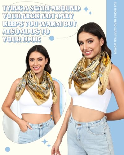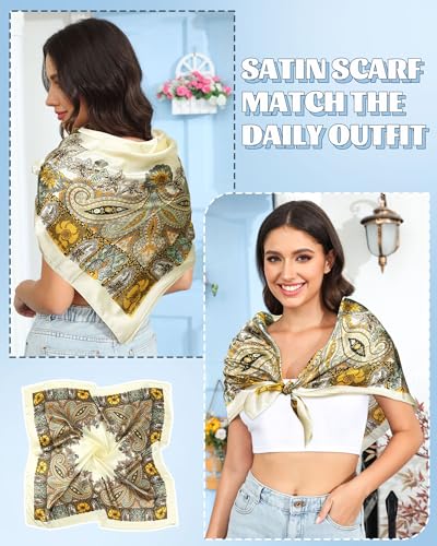 AWAYTR 35?? Large Square Satin Head Scarf - 3Pcs Satin Hair Scarves Silk Bandana Scarf Headscarf Silk Feeling Scarf for Women
