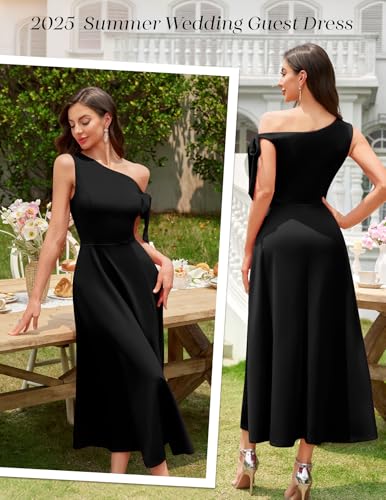 BeryLove Women's Formal Elegant Wedding Guest Dresses One Shoulder A Line Maxi Cocktail Slit Dress
