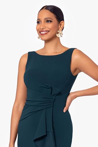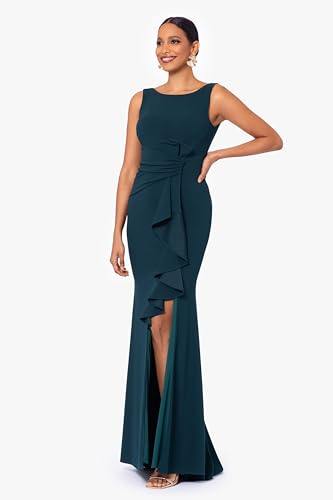 Betsy & Adam Women's Long Sleeveless Boat Neck Ruffle Side Slit Scuba Crepe Gown