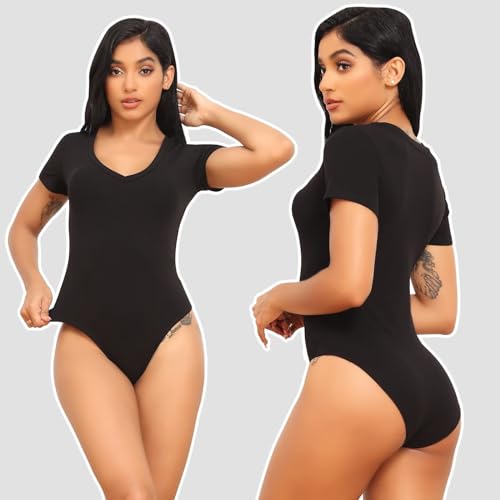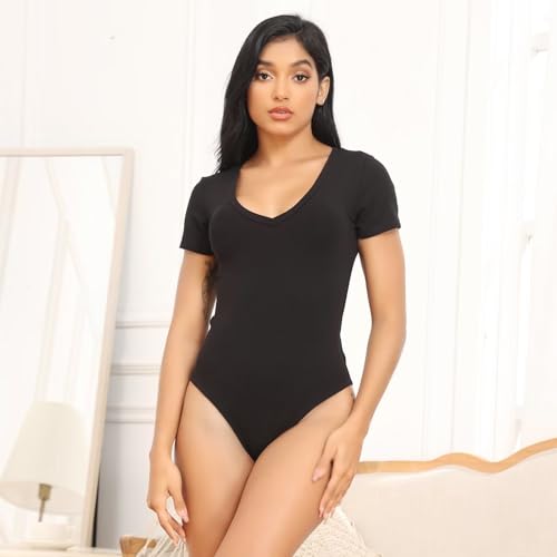 CE' CERDR 5 Pack Bodysuits for Women Short Sleeve Deep V Neck Tops T-shirt Bodysuit Casual Outfits