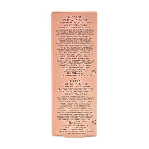 ICONIC PILLOWTALK DUO: Includes a travel-friendly Mini K.I.S.S.I.N.G. Lipstick and Mini Lip Cheat Lip Line, a universally flattering cool pink nude for a "your lips but better" look??perfect for on-the-go touch-ups. LIP ENHANCING: This Lipstick visibly soften, hydrate, and protect lips while delivering a smooth, satin finish that enhances your natural lip color. PRECISION LIP CHEAT LIP LINER: The waterproof Lip Cheat Lip Liner defines the look of lips with a long-wearing formula that lasts up to 6 hours, helping you create a fuller, more sculpted pout. LUMINOUS FINISH: Infused with light-reflecting pigments, the lipstick creates a multi-dimensional effect that makes lips appear fuller, smoother, and beautifully luminous with every swipe. LUXURIOUS LIP MUST-HAVE: This bestselling Charlotte Tilbury lip set is a perfect gift or personal treat for achieving a polished, kissable pout with a touch of everyday elegance.