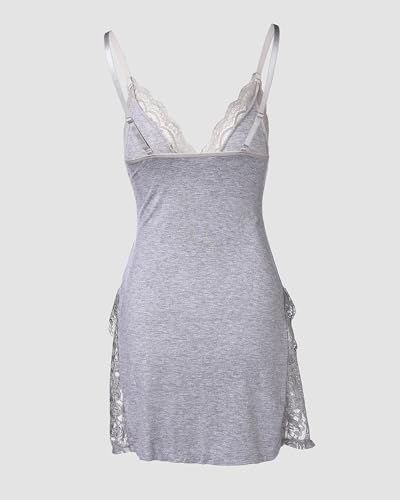 CHICME Women's Lace Trim Side Slit Modal Cami Sleep Dress Loungewear Cute Night Gowns for Women