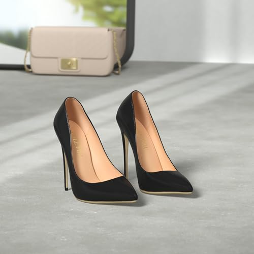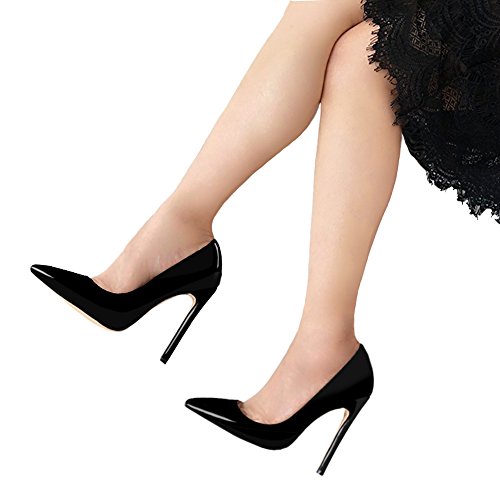 COLETER Women's Sexy Pointed Toe High Heels,4.72 inch/12cm Patent Leather Pumps,Wedding Dress Shoes,Cute Evening Stilettos