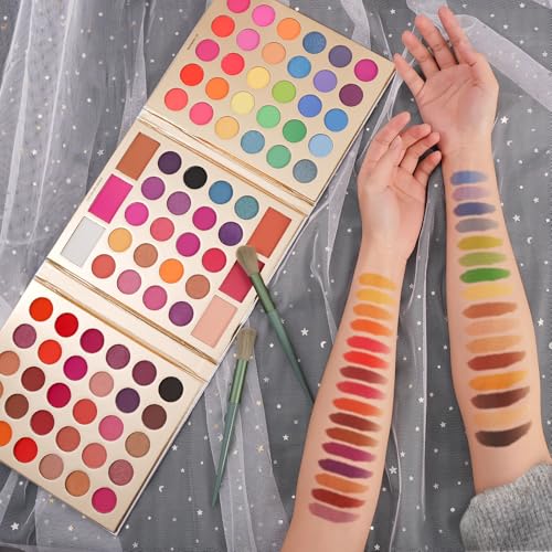 BEAUTIFUL GIFT: One makeup bag can create multiple makeup effects, good gift for Halloween, Christmas, Mother's Day, Valentine's Day, Birthday, etc. 86 colours eyeshadow palette with vibrant and glossy shades, meet your all needs.