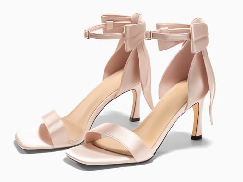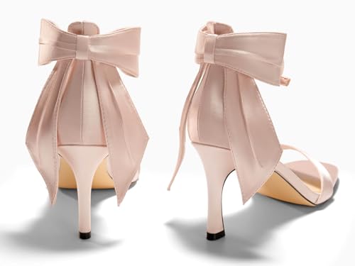 Coutgo Womens Bow Tie High Heels One Strap Heeled Sandals Sexy Stiletto Open Toe Wedding Bride Shoes