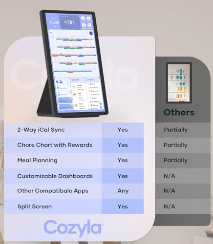 Cozyla 15.6'' Digital Calendar Wall Touch Screen Support Any Android Tablet Google Play Apps To Do List Notepad Chore Chart for Kids Meal Planner Wall Mount Smart Electronic Calendar for Family Black