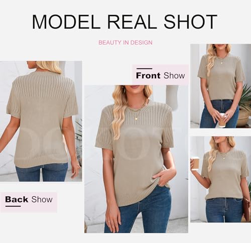 Dokotoo Womens Summer Tops Dressy Casual Crewneck Short Sleeve Shirts Solid Hollow Out Knit Loose Sweater Blouses