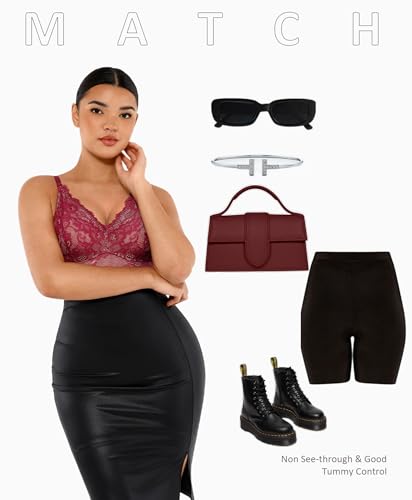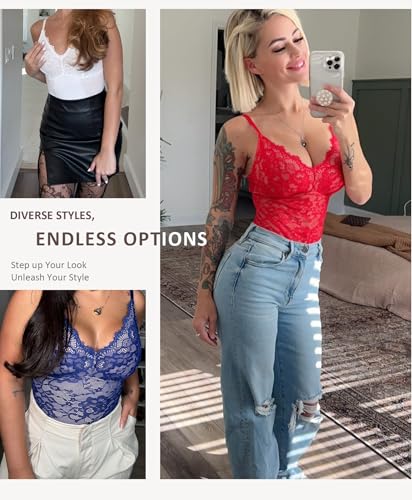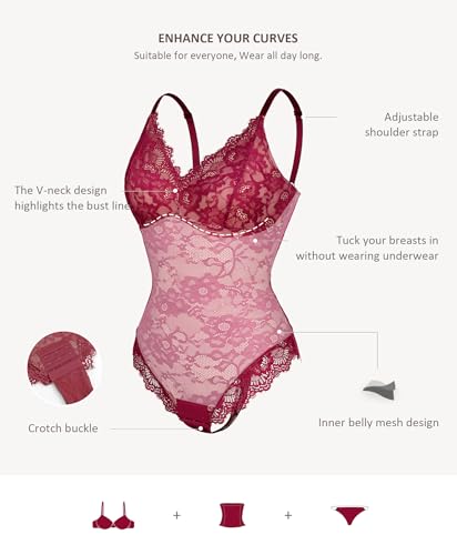 FeelinGirl Shapewear Bodysuits for Women Lace Shapewear Tummy Control V-Neck Sleeveless Bodysuit Tops Jumpsuit