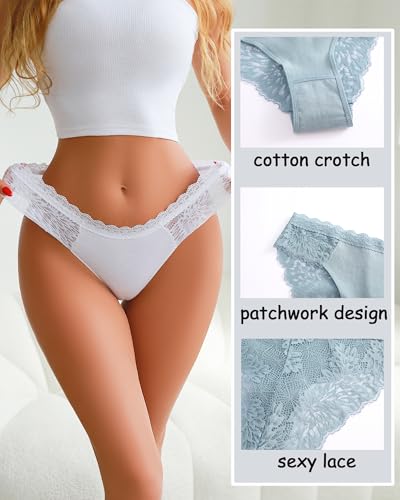 FINETOO 6 Pack Bikini Underwear for Women Sexy Lace Cheeky Panties Low Rise Hipster Cotton Panty