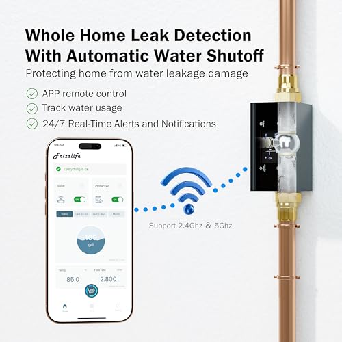 [Ultrasonic Technology for Precise Flow Monitoring]--Upgraded ultrasonic technology, Frizzlife accurately monitors water flow rates, detecting even the smallest changes??down to 0.01 gpm. This precise flow monitoring ensures reliable leak detection and extends device lifespan, saving you time and maintenance costs while keeping your home protected.