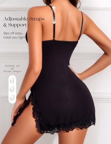 Sexy Night Gowns for Woman Lace Trim Sleep Dress Babydoll Lingerie Dress Side Split Nighty Chemise Nightgowns