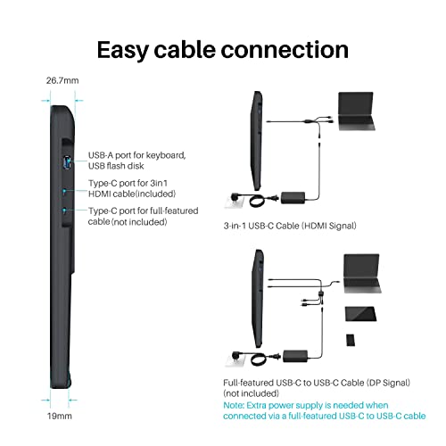 Easy Cable Connection: Two USB-C ports equipped on Kamvas 22 digital drawing tablet allow you to connect the pen display to the computer, Android phone or tablet via a 3-in-1 cable or a USB-C to USB-C cable(optional). While the USB-A port is designed for the connection to external peripherals such as keyboard, USB disk, etc.