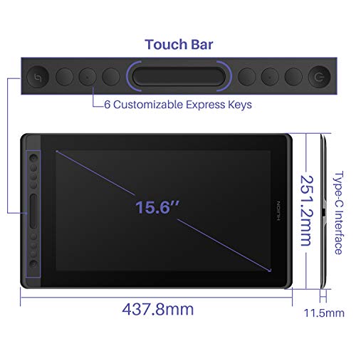 HUION KAMVAS Pro 16 Graphics Drawing Tablet with Screen Full-Laminated Graphics Monitor with Battery-Free Stylus Tilt 8192 Pen Pressure 6 Hot Keys Touch Bar - 15.6inch Graphic Tablet for PC/MAC/Linux
