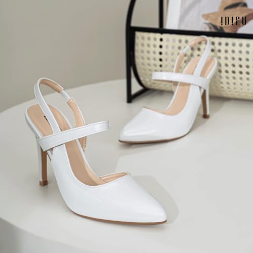 IDIFU IN4 Women's Pumps High Heels Strappy Closed Toe Stiletto Pointed Toe Slingback Dress Shoes for Women Wedding Prom Bridal Party Trendy Fashion Sexy Comfortable Pumps Dressy Shoes