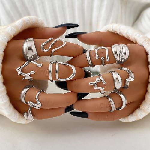 IFKM Gold Chunky Rings Set for Women 14k Gold Plated Thick Dome Stackable Open Rings Trendy Dainty Minimalist Jewelry Gifts