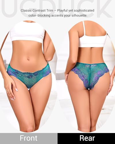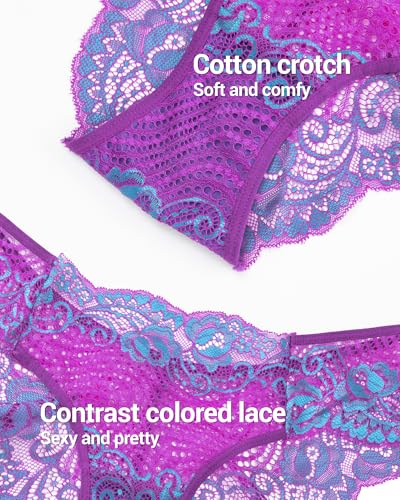 Lace Panties for Women Cheeky Low Rise Underwear with Wave Lace Trim, Sexy & Comfortable Hipster Panty 3 Pack