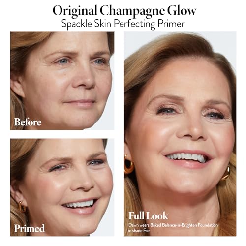 THIS 3PC MAKEUP KIT INCLUDES: our Spackle Skin Perfecting Primer in Champagne Glow, a subtle champagne tint, Baked Balance-n-Brighten Color Correcting Foundation, and our Retractable Kabuki Brush. FRESH FACED MAKEUP ESSENTIALS: The three-piece makeup kit includes our Spackle Skin Perfecting Face Primer in Original Champagne Glow the perfect glowy base, Baked Balance-n-Brighten Color-Correcting Foundation, and our Retractable Kabuki Brush that buffs and blends harsh lines for a naturally flawless effect. GOOD- FOR-YOU- INGREDIENTS: This set's Spackle Skin Perfecting Primer gives you a glowy base with Hyaluronic Acid and Squalane that plump and hydrate, and Rice Extract and Marine Fennel that brighten your skin. The Baked Balance-n-Brighten Color-Correcting Foundation applies weightlessly and is formulated with antioxidants Centella Asiatica and White Tea Extracts for soothing hydration. Buff and blend easily with the Retractable Kabuki Brush, made with soft bristles that never shed. PERFECT YOUR SKIN TEXTURE, SMOOTH OUT AN UNEVEN COMPEXION AND COMBAT FINE LINES & WRINKLES Mature skin and dull skin will especially benefit! HOW TO APPLY: Pump one to two shots of the Spackle Skin Perfecting Primer on the back of your hand, then blend a thin layer onto clean skin, massaging the product into your skin. Next, swirl our Retractable Kabuki Brush in the Baked Balance-n-Brighten Color Correcting Foundation, gently tap off the excess, apply to skin using circular motions blending outward and upward. Repeat to build coverage.