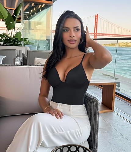 LODAY Shapewear Bodysuits for Women Deep V Neck Body Suit with Built in Bra
