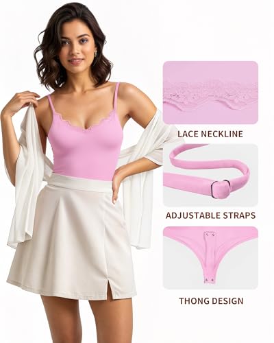 MANGOPOP Lace Body Suits Women Sexy Cami Thong V Neck Bodysuit for Women Double Lined Adjustable Spaghetti Strap Tank Tops