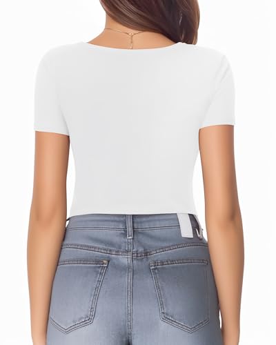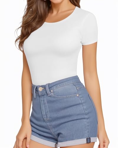 MANGOPOP Round Neck Short Sleeve Long Sleeve Bodysuits for Women Basic Body Suit Shirts Tops