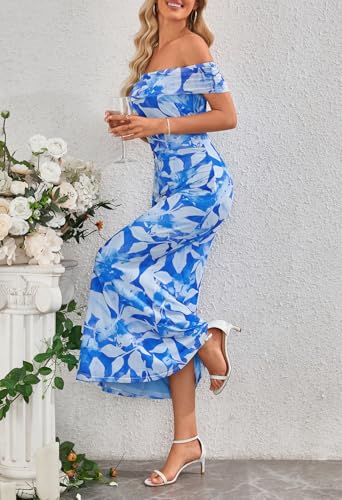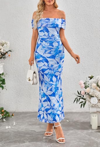 MEROKEETY Women's Summer Off Shoulder Floral Maxi Dress 2025 Formal Wedding Guest Cocktail Bodycon Dresses