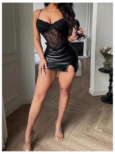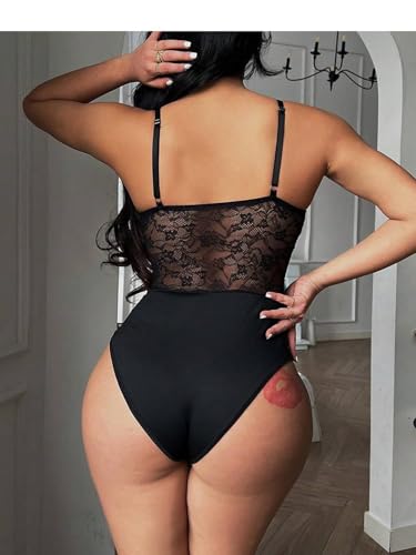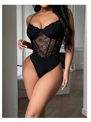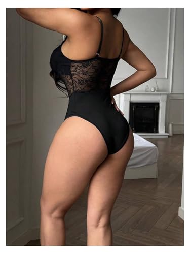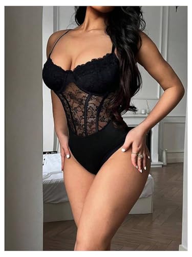 Milumia Women's Floral Lace Mesh Corset Bodysuit V Neck Spaghetti Strap Cami Top